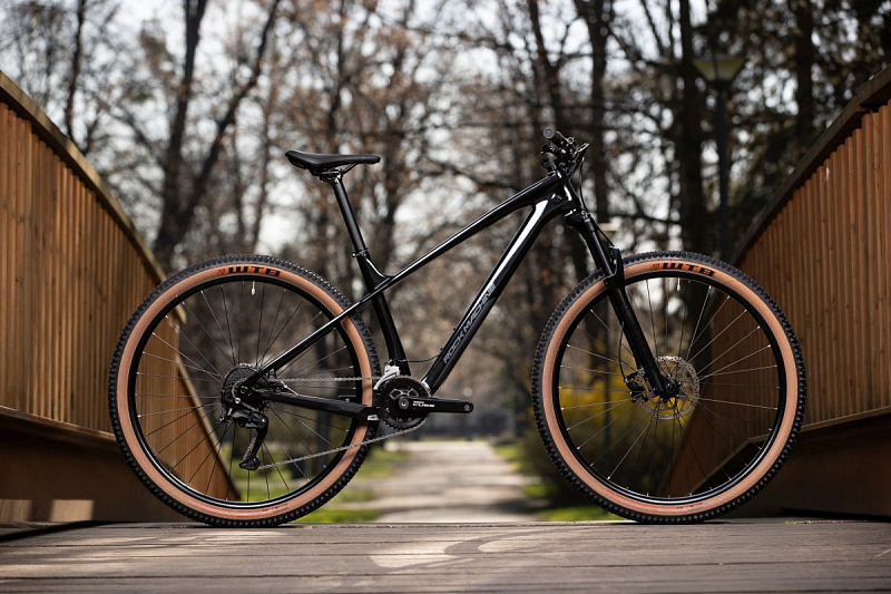 - Rám: Carbon Mid Modulus BF-FB-02, pokročilá trailová geometrie, vnitřní vedení kabeláže pomocí trubiček, prostupnost plášťů 29x2,4", 27,5x2,6",