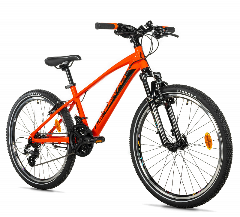 Široké pláště CST 24 × 2,10" poskytují dobrou stabilitu a přilnavost na různých površích. Přehledný a spolehlivý pohon SHIMANO 3×7 pokrývá většinu jízdních situací a umožňuje dítěti intuitivní a snadné ovládání kola.