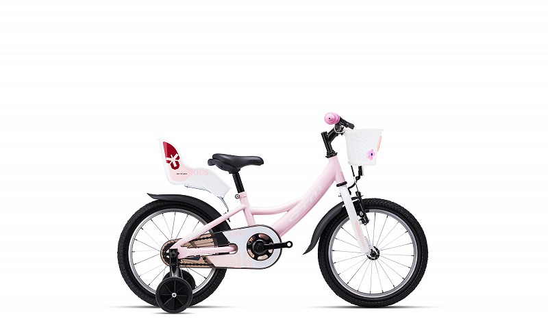 CTM Jenny je 16palcové dívčí kolo pro děti s výškou postavy od 100 do 120 cm. Má pevné ocelové tělo pro dobrou stabilitu a standardně je dodáváno s balančními kolečky, plastovými blatníčky a bezpečnostním krytem řetězu. Mladé slečny jistě ocení i sedátko pro panenky.